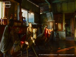 After paying the entrance fee at the café below, the caretaker led me towards a rickety wooden staircase. I was the only visitor that time, and I think that is the reason why the caretaker decided to leave me on my own. Atop the staircase was a very ordinary looking wooden door, devoid of any adornment, with only the oddly placed poster of a religious image disrupting the monotonous dark brown canvass.