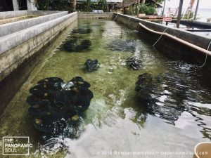 The sanctuary was a humble outdoor affair, facing the Bohol Sea. Several vats of seawater are scattered on the beach front, filled with various