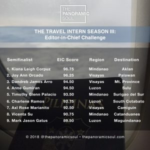 It was January 4, 2019, when the time has come to finally reveal The Panoramic Soul: Travel Intern Season III winner. Combined emotions were felt. Every once in a while, my family would be messaging and calling me for updates. Everyone was thrilled. It was intense, and I couldn’t focus while staring at my PC to finish my work while everyone in the office was busy and excited for the weekend. There I was, caught in the moment of silence within, as I reminisce how my journey began in this competition. I could hardly imagine how I have come this far, especially with the thought that all the contenders are brilliant. Everyone deserves to be the Travel Intern Season III winner. We are all unique and special in our own ways, which I believe is the very reason why it was a tough deliberation for the judges.