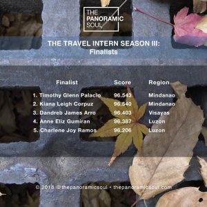 It was January 4, 2019, when the time has come to finally reveal The Panoramic Soul: Travel Intern Season III winner. Combined emotions were felt. Every once in a while, my family would be messaging and calling me for updates. Everyone was thrilled. It was intense, and I couldn’t focus while staring at my PC to finish my work while everyone in the office was busy and excited for the weekend. There I was, caught in the moment of silence within, as I reminisce how my journey began in this competition. I could hardly imagine how I have come this far, especially with the thought that all the contenders are brilliant. Everyone deserves to be the Travel Intern Season III winner. We are all unique and special in our own ways, which I believe is the very reason why it was a tough deliberation for the judges.